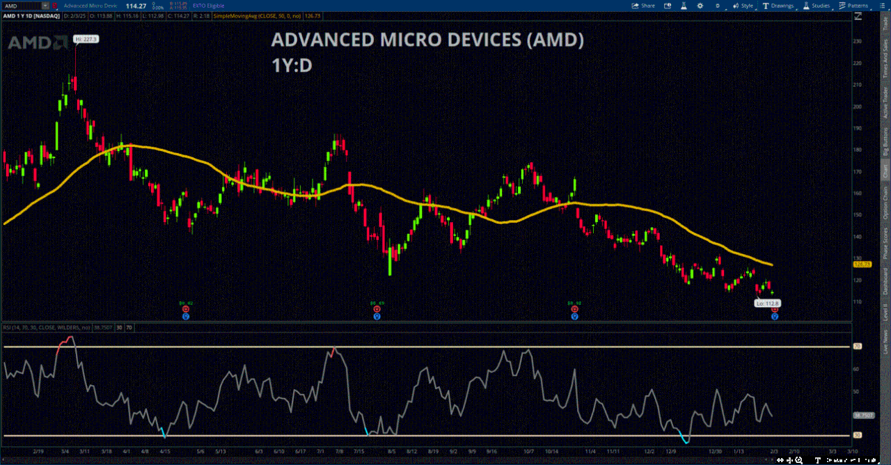 On the technical front, AMD shares hit 14-month lows last week and are down 5% this year as of Monday’s close. The RSI, or Relative Strength Index, settled at the 38 level yesterday. Anything below the 30 level is considered oversold on a technical basis and is reflective of the weakness that we have seen in the stock.