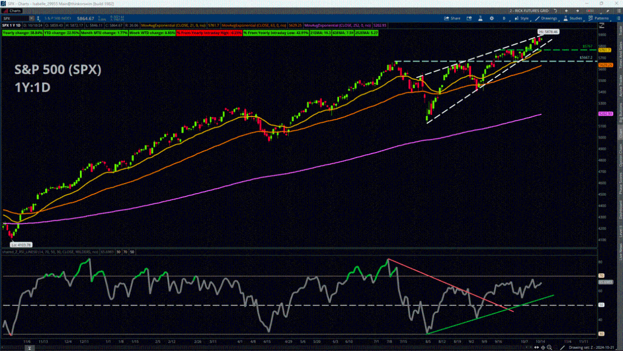 The S&P 500 (SPX) notched another record high of 5,878.46 last week, bringing its total advance during 2024 to about +23% as of Friday’s close. The index’s futures counterpart (/ES) is slightly lower in the premarket as traders gear up for a big earnings week, in which more than 20% of the S&P 500 will give quarterly results.