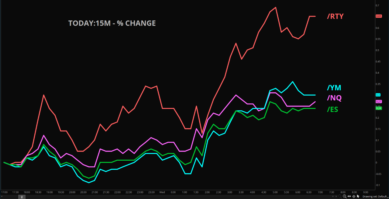 - U.S. Dollar (/DX) – The dollar is down 0.4% to 97.6.