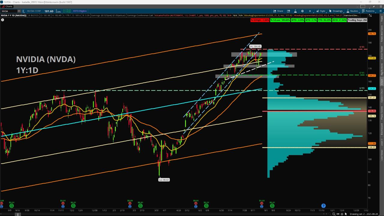 Volume Profile shows that trading activity dries up below the 170 level until about 165, which also lines up with the 63-EMA as well as the opening of a gap from Jul. 14 and the relative lows from Jul. 22, so this could be another key area to watch.