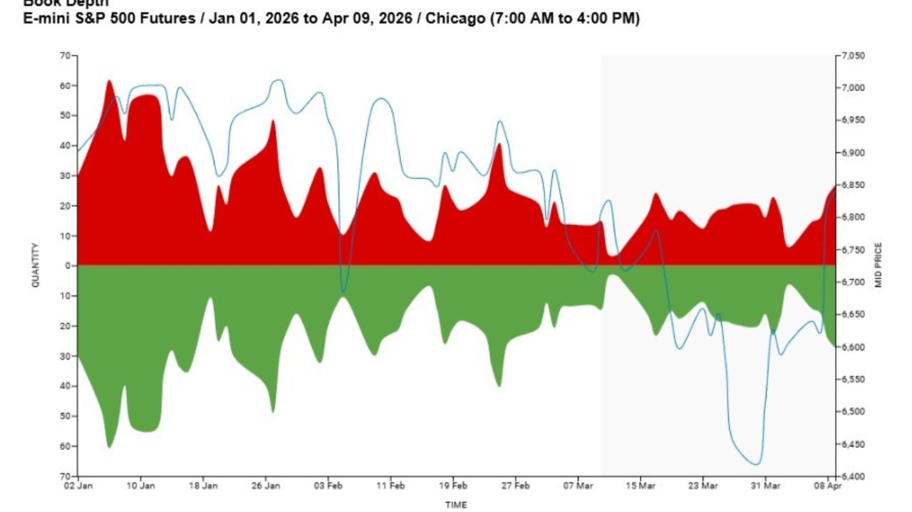 Liquidity has also improved. The CME liquidity tool is showing an increase in book depth, that is, the number of contracts resting on the bid and ask, which tends to have a direct relationship with volatility. Greater book depth generally helps dampen volatility, although liquidity conditions still have room to improve further.